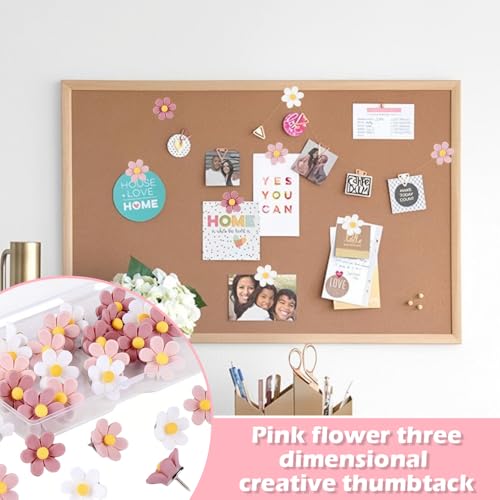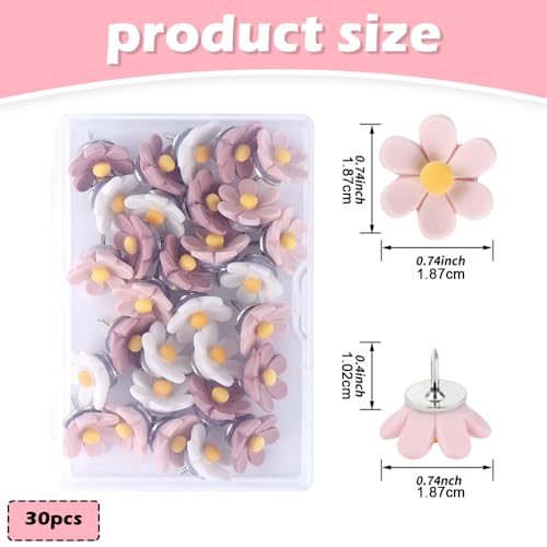- 30PCS Decorative Pins: Includes 30 flower-shaped pushpins (pink and white), each 0.9 inches in size, with a convenient storage box for easy organization and portability