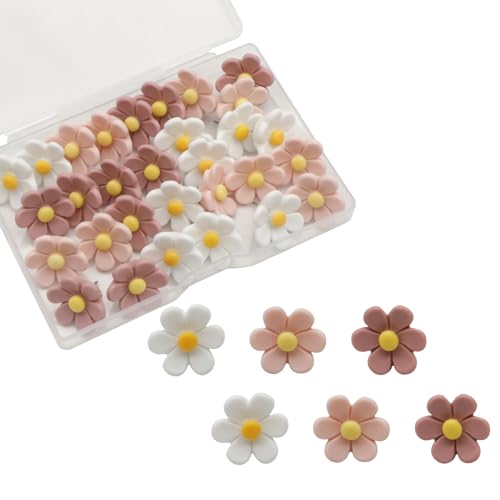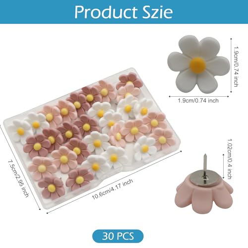 - The buyer will receive a set of 30 Drawing Pins for Notice Boards. Each pin features a cute flower design in a range of vibrant colors, providing a fun and functional way to organize and decorate cork boards, pinboards, and more.