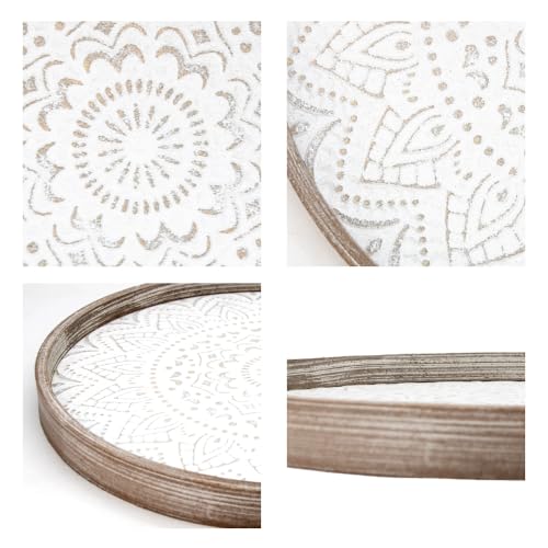 - Unique Bohemian Floral Pattern:On the bottom of the wooden plate there is a white bohemian pattern that is so unique,sprayed with environmentally friendly materials, not easy to fall off. you won't be able to forget it after one look.