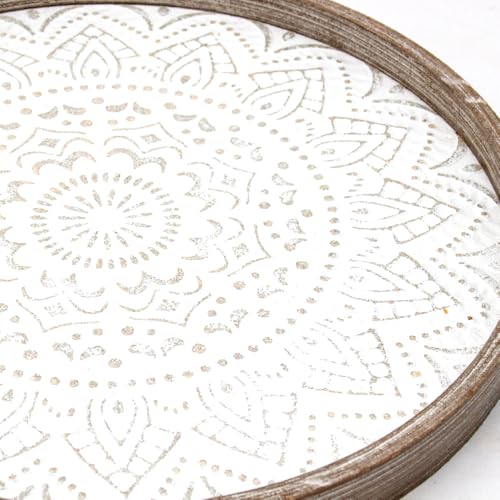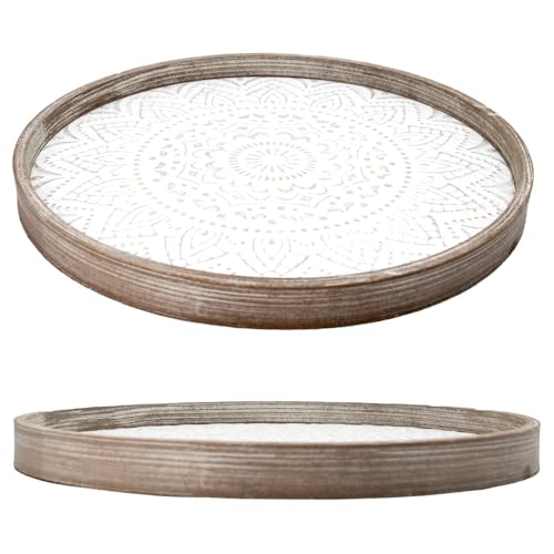 - Wooden Serving Tray Rustic 30CM Round Table Centrepiece Home Decor Wood Candle Holder Living Room Kitchen Ottoman Trays Christmas Decorative Plates Coffee Table Serving Platters Wooden Colour