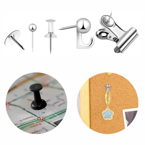 - Value Set: You will receive a set of 310 push pins in 5 styles, including 100 pushpins, 100 roundness thumb tacks, 100 map tacks, 5 push pins clips, 5 push pin hooks This abundant push pin set is more than enough to meet your office needs