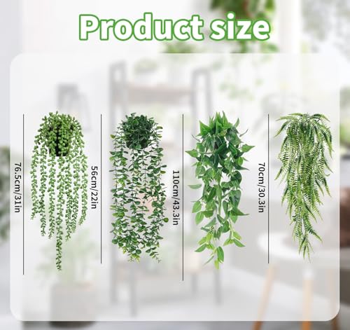 - 【Diverse Design】This Artificial Hanging Plant Set includes four artificial artificial rattan plants of different shapes and lengths, which you can place in various corners of your home according to your preferences and home layout.