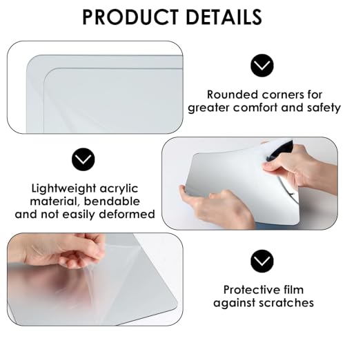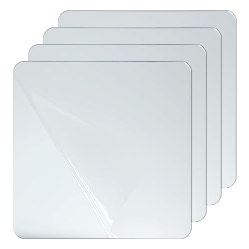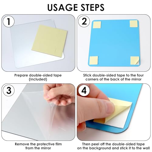 - 4-Piece Mirror Tile Set: Includes 4 self-adhesive acrylic mirrors, each 20x20cm with 2mm thickness. Designed with rounded corners and protective film for safety. Each adhesive mirror comes with strong double-sided stickers for fast, damage-free installation on smooth surfaces.