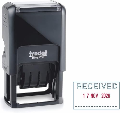 - PERSONALISED SELF-INKING DATE STAMP: The Trodat 4750 Self-Inking Date and Text Stamp features a customisable design with a size imprint of 42mm x 26mm, ideal for adding both date and text to documents with ease.
