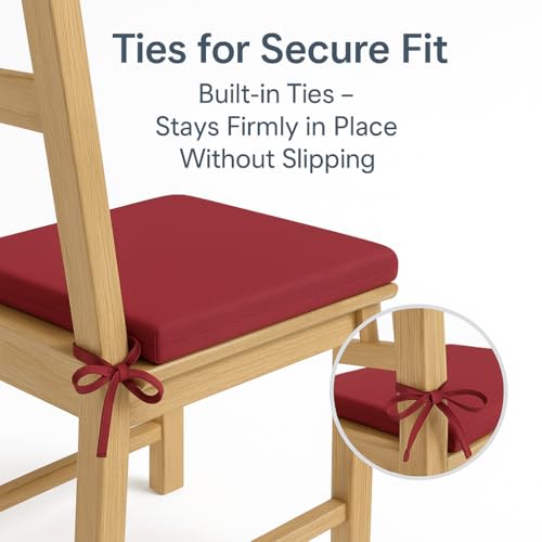 - Secure Fit with Built-In Ties Strong fabric ties keep each cushion securely in place, preventing slipping or movement, even on smooth surfaces like kitchen and patio chairs.