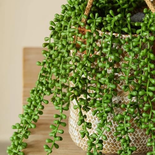 - Enhance Your Space: Elevate your decor with this set of 4 Artificial Hanging Succulents Greenery Wall Decor. Each package includes 4 lifelike string of pearls succulent plants, adding a touch of nature to any room.