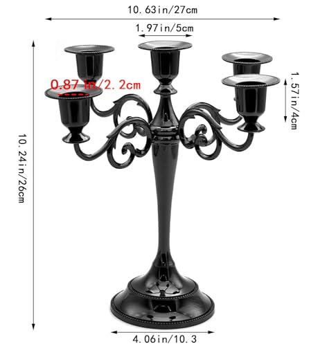- 🔥 Size: Metal candle holders designed for 5 candles,10.24inch / 26cm tall candelabra, suitable for diameter 3/4inch / 1.9cm or 7/8 inch / 2.2cm standard candles or taper candles.