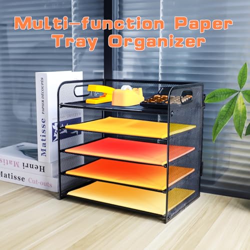 5 Tier Paper Letter Tray with Handle, Metal Mesh Desk File Organizer with Trays, A4 Paper Desktop Filing Trays, Magazine Document Holder for Home Office School