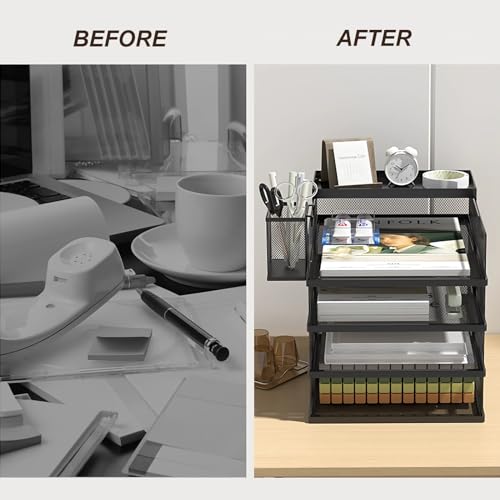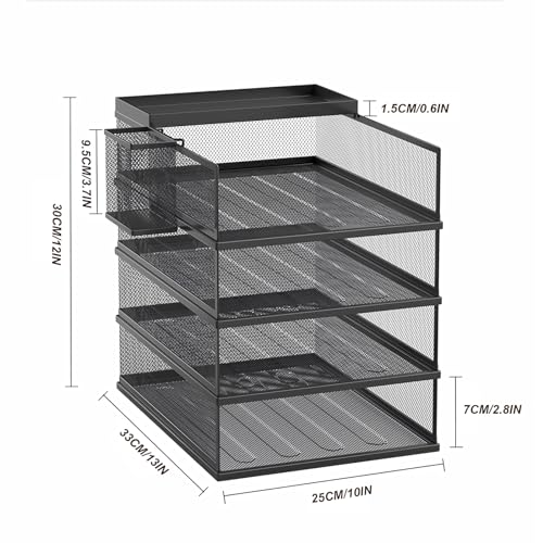 - 【DOCUMENT LETTER TRAY SIZE & MATERIAL】13.5" x 9.7" x 2.9"(33cm*25cm*7cm) Each paper tray l 4 easy access management tray- Sturdy steel black mesh construction.No tools needed. Very easy to set up.