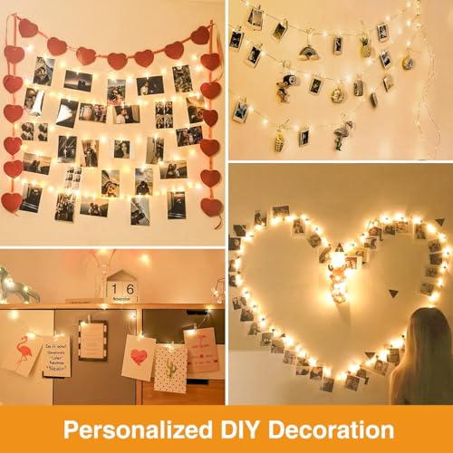 - 【Multipurpose Scene】The clips string lights for hanging pictures/cards is a great idea and beautiful decoration for Christmas, Birthday, Celebration, Bedroom, Valentine's Day, Thanksgiving Day, New Year, wedding, party, wedding, shop window display, staircase, hallway etc. These fairy lights can be used all year round.
