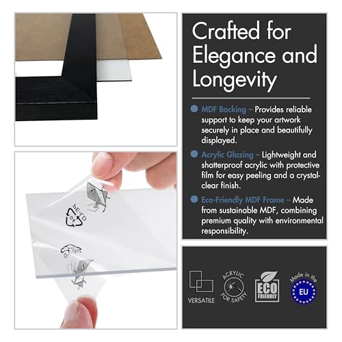 - Command Strip Friendly Design – Lightweight MDF frame and shatterproof Perspex glazing make this picture frame ideal for use with command strips. Hanging hooks sit flush with the frame, eliminating the need to remove them, and the frame width is perfectly sized to securely accommodate command strips, ensuring hassle-free, damage-free wall mounting.