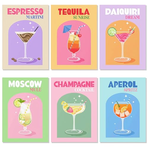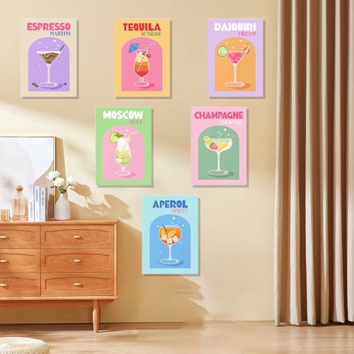 - 【Cocktail Wall Art Canvas】This is a set of 6 cocktail wall art. Colorful cocktails painting wall decor is one of the beautiful and charming trends in modern interior design