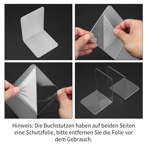 - Robust Material: Book ends are made of highly transparent acrylic material, which has stable performance, does not yellow or discolour after prolonged use. Note: To avoid scratches during transport, the device comes with a protective film. Please tear off the film when you use it