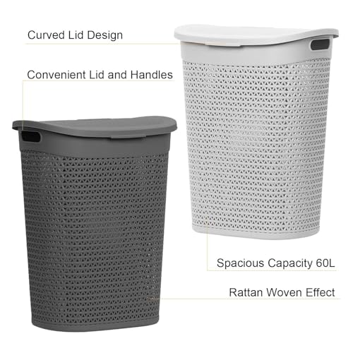 - SPECIFICATION: Dimensions: 57cm (H) x 44cm (W) x 35cm (L) | Capacity: 60 Litres | Material: Woven Plastic | Colour: Grey or White