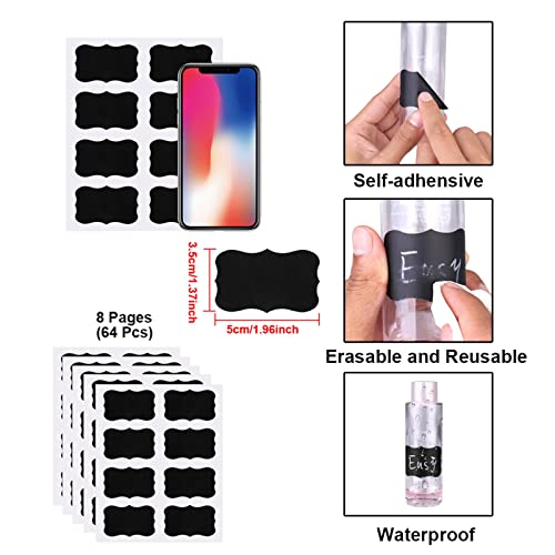 - [ Wide Application ] — The 64 chalkboard labels are suitable for jars, wine glasses, coffee or tea tin boxes, folders, mason jars, jelly jars, spice jars, bottles, casseroles, home-made lotion bottles, office supplies, toy bins, coffee shop, craft projects, bakeries, walls and kids bedrooms, making it easy to identify your things.