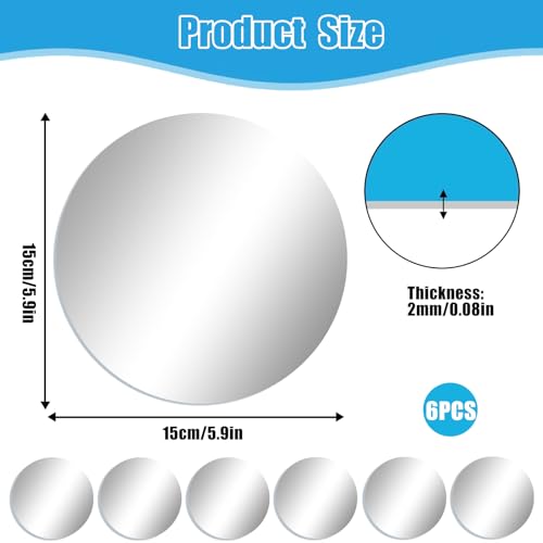 - Package Content: This kit contains 6 pcs self adhesive mirrors, each round mirror size is about 15 x 15 cm / 5.9 x 5.9 inches, lightweight and easy to carry or use, they are also easy to store and do not take up much space.