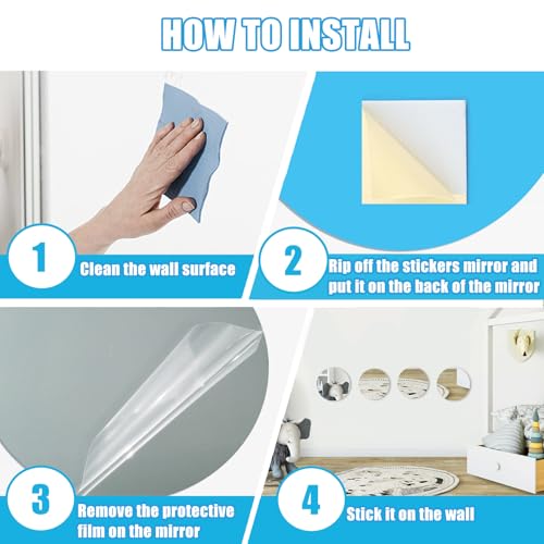 - Easy to install: This wall mirror set requires no punching and sticks directly to any smooth surface like walls, doors, etc, each wall mirror comes with a protective film, just peel it off.