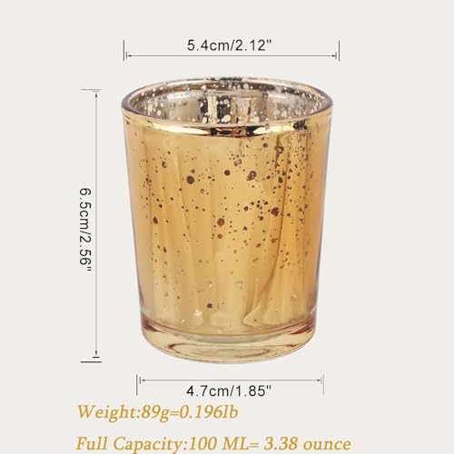- MERCURY GLASS VOTIVES: Mercury speckled effect on the gold votive candle holders will enhance the natural warm light of votive candles, giving it a vintage but timeless look.