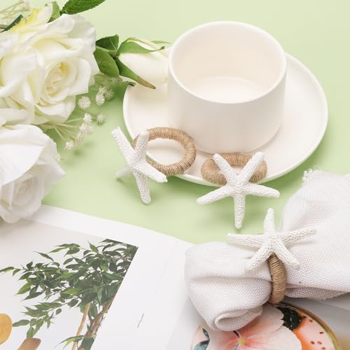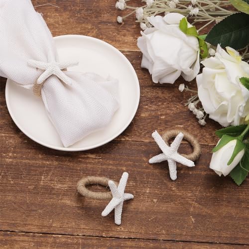 - Stylish Beach Theme: Our napkin ring holder is designed with starfish shape, white sea star will catch your eye's deeply. These rustic napkin rings will make your home be filled with the atmosphere of ocean, nature,and will also create an memorable dinner for you.