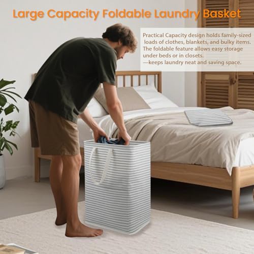 - 【Collapsible Hamper Design to Save Space】: Foldable storage basket can be folded into a small piece when not in use. The foldable feature make it easy to store or carry, ideal for home storage/ travel / Camping / RV, easy storage and space saving. ♥Not only is it an ideal choice for family, but it is also an excellent gift for mother, friends, baby showers, and housewarming..