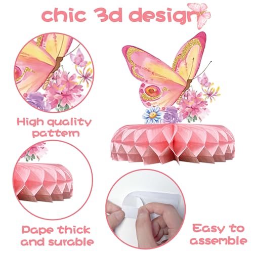 - 【Butterfly Birthday Honeycomb Centerpieces】We will provide you with 7 pieces butterfly centerpieces for tables, designed into 7 different styles and patterns; Sufficient quantity and diversified styles can easily meet your desktop decoration needs.