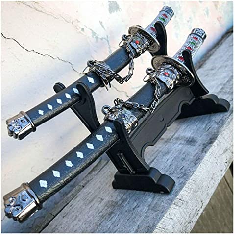 - 2PC Mini Samurai Sword w/ Display Stand. 8" Inches And 6" Inches Overall Length