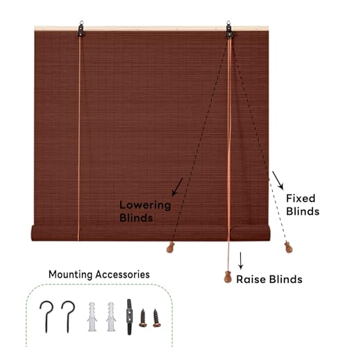 - 【Easy to install and use】Outdoor bamboo blinds material itself is relatively lightweight and comes with installation accessories, which makes it relatively easy to install and allows you to quickly decorate your home space. Blinds can be raised to any height by pulling the drawstring, easy to roll up and down, easy to use.