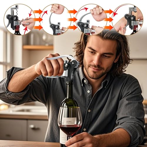 - 【Easy to Operate】: The classic upright lever mechanism design makes bottle opening simple and fast. Simply fix the spiral drill at the bottle mouth and pull the lever up and down to easily remove the cork without any effort.