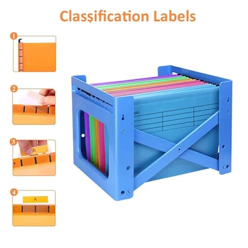 - HANGING FOLDERS SET: Contains 15 pcs A4 Suspension Files in 5 Colours: Pink*3PCS, Purple*3PCS, Orange*3PCS, Blue*3PCS and Green*3PCS with 24pcs clear plastic tabs and 1 sheet of tab paper