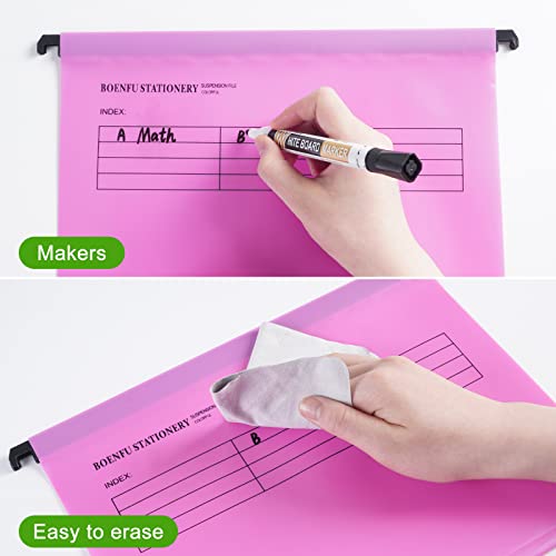 - Packaging: 24 pack hanging document bags,blue ,orange, purple, pink, and green, with 24 color label papers, 24 transparent plastic label holders and 2 Erasable pens.The different colors can be intuitively classified .