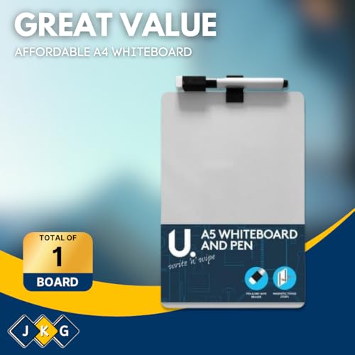 - A4 Whiteboard with Pen Included – Comes complete with a premium dry wipe marker for instant use; perfect for jotting notes, reminders, or daily planning.