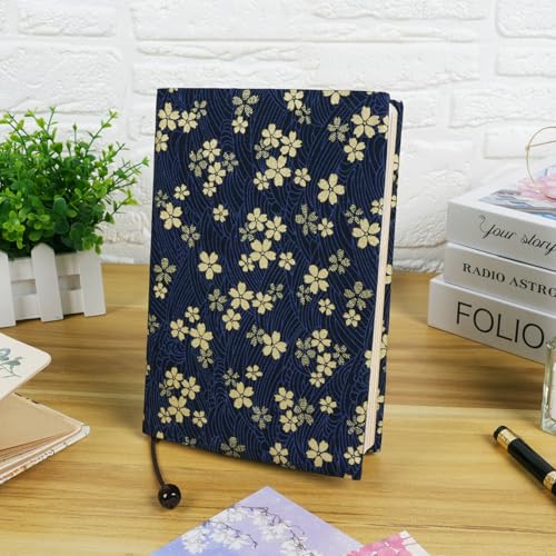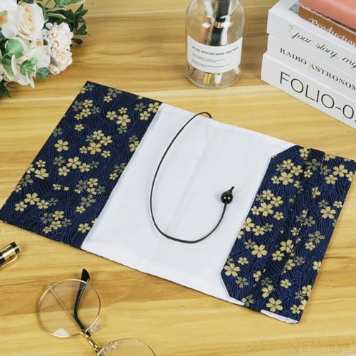 - Elegant Navy Blue Floral Design: Canvas book protector is printed with yellow cherry blossom pattern, delicate and elegant, allows you to quickly select or sort books according to the cover, suitable for personal use or as a thoughtful gift to friends.