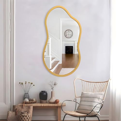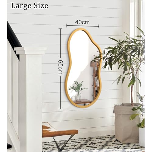 - Wood Framed Mirror: The hanging mirror is constructed by superior wood frame;asymmetric mirror is designed with irregular shape,simple but not design sense;it can be matched with various furniture styles,which can bring a distinctive artistic atmosphere to the space