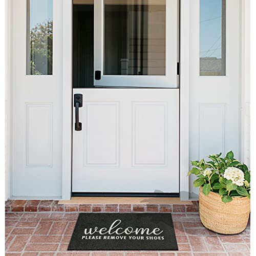 - PERFECT SIZE:The welcome mats fort front door measures 70x45cm and is 0.25cm thick providing a low-profile design to prevent tripping or getting stuck under doors and allows nearly any door to pass over with ease.