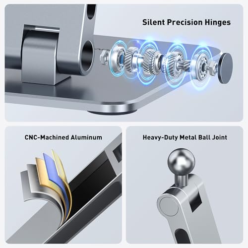 - Premium Build & Smooth Control: CNC-machined aluminum with silent precision hinges for exact positioning—this tablet stand offers 360° rotation and -90° to 90° tilt for comfortable viewing across work, study, and display.