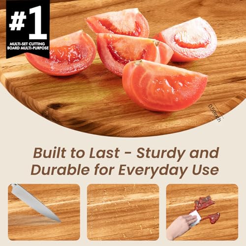 - Premium Acacia Wood Material: Wooden serving board crafted from high-quality acacia wood, these cutting boards are sturdy and durable for everyday kitchen use. Wooden serving board made from natural, food-safe materials with no glue, PVC, or harmful chemicals, ensuring safety and eco-friendliness for your food.