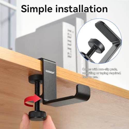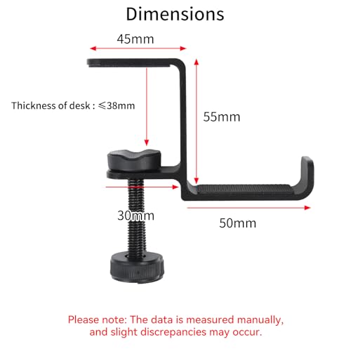 - Easy to install and Height Adjustable: Headphone stand adopts rotating screw fixing design, it fits the table whose thickness between 0 ~ 3.8cm. No other tools are needed, you just have to adjust and secure the holder according to the thickness of the desk. Easy to uninstall also if you want to move it, it won't leave any marks on the table.