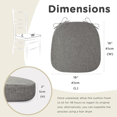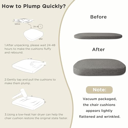 - Refined Fit Design: Featuring a contoured D-Shape, these 16"L x 16"W x 2"H thick kitchen chair cushions suit most chairs in dining rooms, kitchens, bedrooms, and living spaces. Arriving vacuum-sealed, they fully expand within 48 hours—allow foam to rebound for optimal comfort.