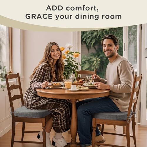 - Dual Anti-Slip System: A premium silicone dotted backing offers gentle grip without damaging chairs, while two pairs of straps ensure these seat cushions for kitchen chairs stay firmly anchored. Enjoy worry-free stability, even with frequent movement.
