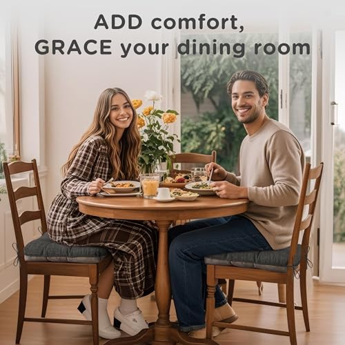 - Special Design: Dual non-slip design, the non-slip fabric on the bottom of the dining chair cushions set of 4 and the two ties on the side can help the cushion fix better on the chair. You don't need to adjust the cushion many times, just concentrate on enjoying your food and life. In addition, the cushions are surrounded by strong side seams, making the cushion more durable.