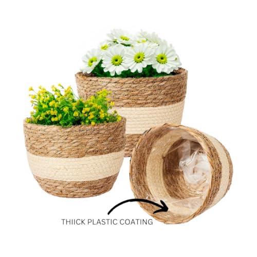 - STYLISH HOME DÉCOR – The natural look of these woven planters adds a touch of bohemian elegance to any room. They are not only functional but also make beautiful decorative accents in your living room, bedroom, kitchen, or patio.