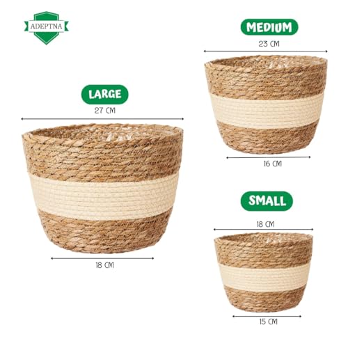 - VERSATILE PLANT DISPLAY – Elevate your indoor and outdoor greenery with ADEPTNA set of 3 natural seagrass woven planters. Perfect for showcasing your favourite houseplants, succulents, or herbs in a charming, rustic style.