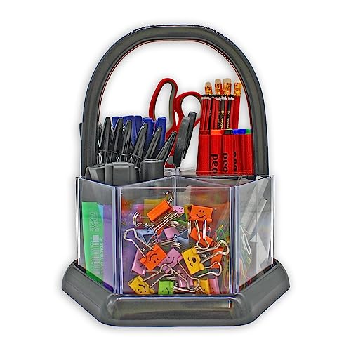 - DESK ORGANISER – An easy to assemble, all in one strong, portable stationery storage pen holder solution that features all the space you need to keep your classroom, playroom, office, or home clutter free.