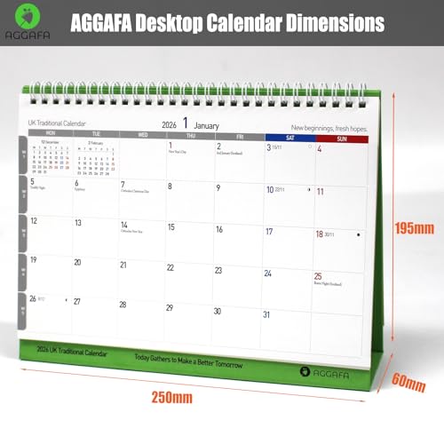 - Versatile Double-Sided Design: The AGGAFA 2026 Desktop Flip Desk Calendar shows UK holidays and observances on the front, with holidays for 7 EU countries (United Kingdom, Ireland, Germany, France, Poland, Italy, Spain) on the back. A practical desk planner and organizer, perfect for office, school, or home use.