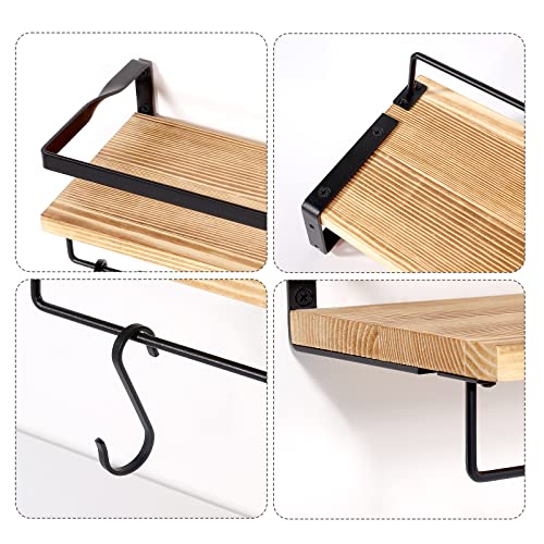 - EASY TO ASSEMBLE: Shelves for wall decor come with 8 hooks, 2 steel guard, 1 towel bar, screws and wall anchors. The dimension is 16.53” L× 5.9” W × 2.91” H, the board is 0.7” thick. Considerate instruction is included, making it easy and effortless to set the bookshelf up in few minutes.