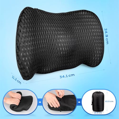 - 【Portable and Convenient】The lumbar pillow with a portable drawstring bag, storage size is only 13.5 * 22.5 cm, when you are playing outdoors, travel, or business trips, etc., you can carry the lumbar pillow with you and enjoy comfortable lumbar support anytime, anywhere.