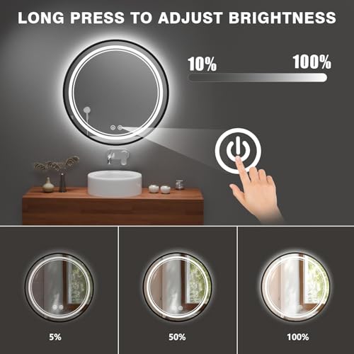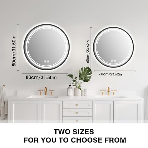 - Agrichamer Round LED Bathroom Mirror, Wall Mounted Vanity Mirrors with Lights, Smart Front Illuminated Mirror Over Sink, Anti-Fog, 3 Colours and Dimmable (80cm)