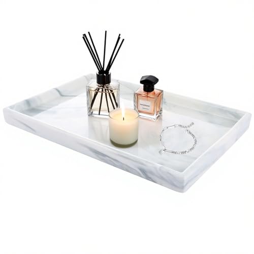 - MULTIFUNCTIONAL: The marble tray is suitable for storing jewelry, perfume, cosmetics, towels, spice jars, soap dispensers and other household items, and can also be used as a decorative tray with scented candles and plants