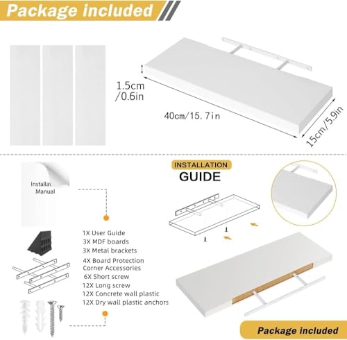 - 【Beautiful MDF Board】: Floating wood shelves made from eco-friendly MDFwood so that they're smooth to the touch, and have a solid feel with superiordurability.