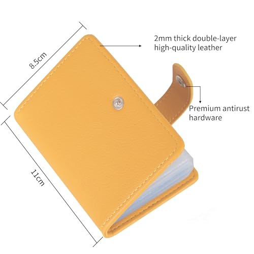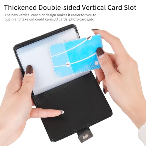 - 【High Quality Material】This card holder is made of PU leather, which is comfortable to the touch, beautiful and durable. And the sturdy transparent insert PVC sleeve can keep the cards clean and tidy, protecting the cards from damage such as scratches. The press stud fastening keeps all your cards secure
